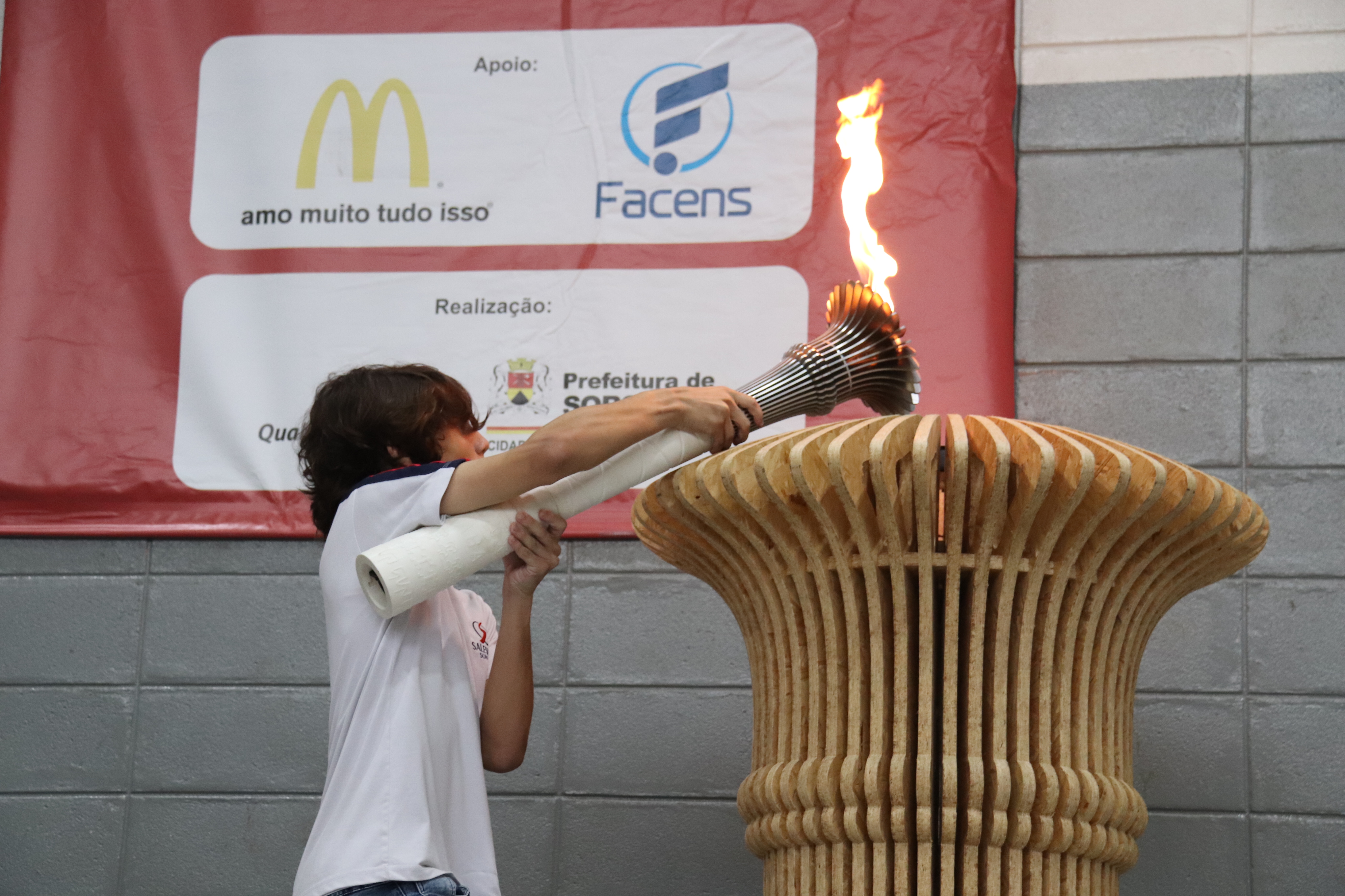 Outra atração foi a equipe de Ginástica Artística de Sorocaba, a Equilíbrio Vital Agir/PM Sorocaba, que se apresentou ao público. Já, o juramento dos atletas foi feito pelo estudante da E.M. “Dr. Achilles de Almeida”, Cauã Henrique Soares. Ao final, o aluno Henrique Formigoni Basso Marques, do Colégio Salesiano, conduziu a tocha para o acendimento da Pira Olímpica.