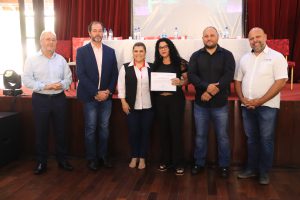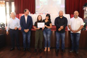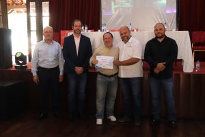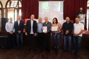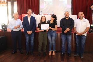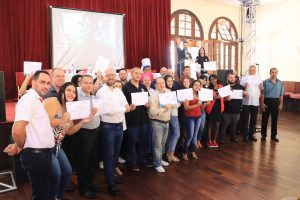 As autoridades, juntamente com os professores dos cursos, entregaram simbolicamente o certificado de conclusão a um aluno de cada turma, sendo eles: Jasmim de Almeida (Informática Básica); Suelen Pontes (Leitura de Desenho Técnico e Mecânico); Jhonatan dos Santos Vaz (Metrologia); Daianara Andrade (Logística); Stefany Silva e Maria Clara Santana (Meu Primeiro Emprego – manhã e tarde); Felipe Campos (Cozinheiro); Rodolfo Coelho (Confeiteiro); Edmilson Silva (Segurança nas Atividades com Trabalhos em Altura NR-35); Ivone Valério (Auxiliar para Linha de Produção); Claudinei Peredo (Operador de Ponte Rolante); Jonathan de Souza Zacarias (NR-11- Operação em Empilhadeira – Qualifica); Fernando de Souza (NR-11- Operação em Empilhadeira – Senai); Rogério Mourad (Soldagem de Manutenção); e Edmilson Souza (Ferramentas de Qualidade).