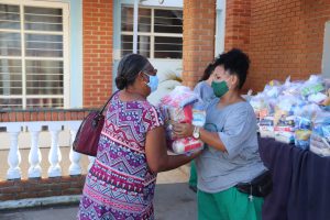 Um dos postos de distribuição foi no Instituto Humberto de Campos, no Jardim Zulmira, na Zona Oeste. E todos os alimentos que compuseram as cestas básicas no local vieram de doações realizadas durante a campanha de vacinação. “Não acrescentamos nenhuma cesta básica aqui. Tudo o que foi doado veio das mãos de quem praticou a solidariedade e trouxe sua doação nos dias de vacinação”, falou Clayton Lustosa, secretário da Cidadania.