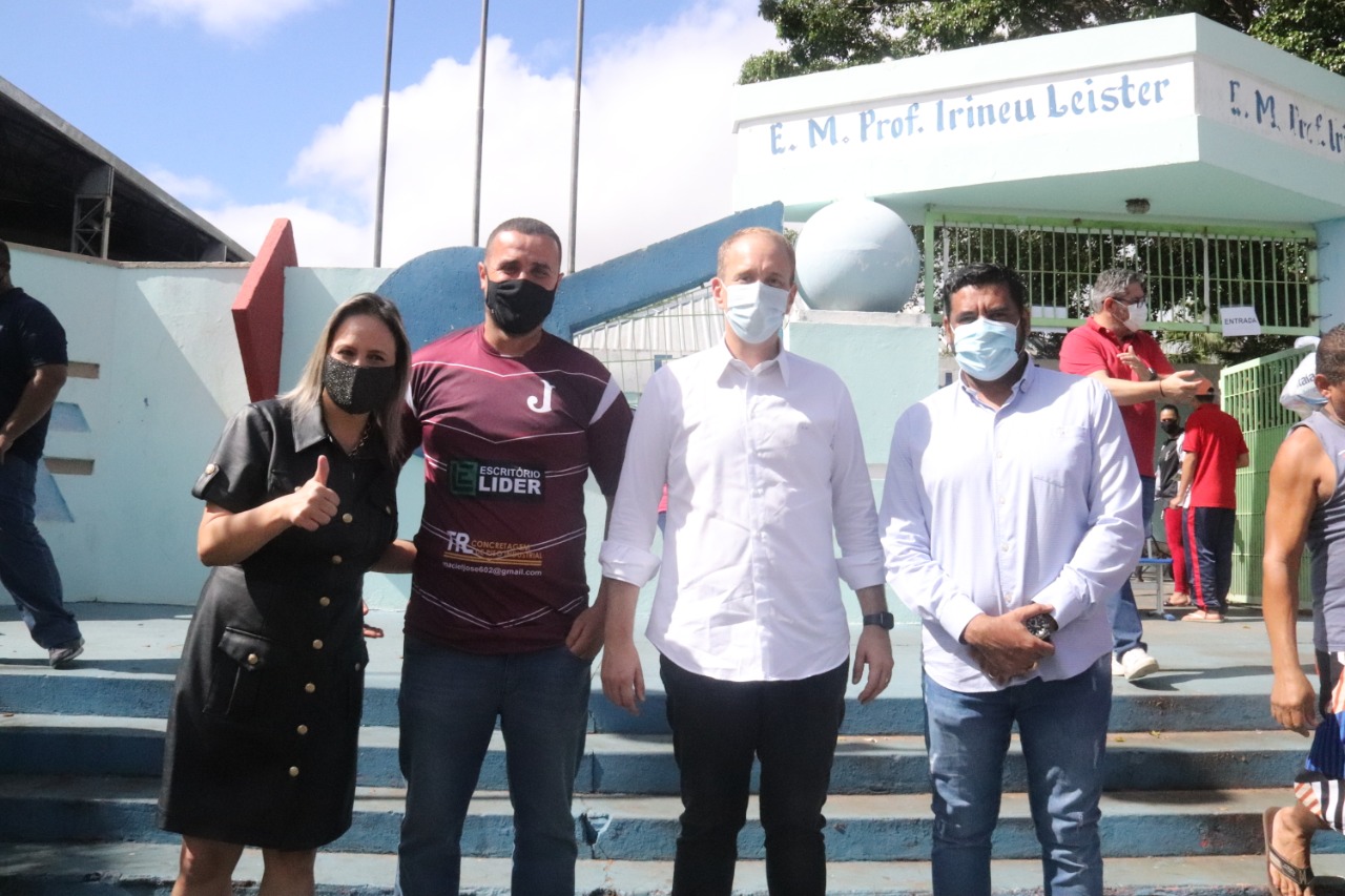 Os secretários Luiz Henrique Galvão, de Relações Institucionais e Metropolitanas (Serim), Carlos Eduardo Paschoini, de Mobilidade e Desenvolvimento Estratégico (Semob) e Fernanda Burattini, de Comunicação (Secom), também estiveram presentes no ato de distribuição de cestas básicas no Jd. Ipiranga.