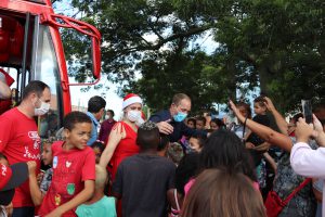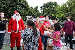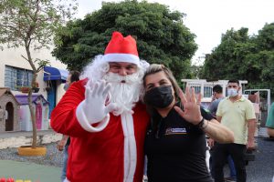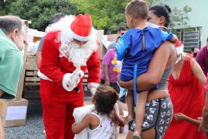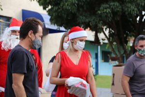 O prefeito Rodrigo Manga e a primeira-dama e presidente do FSS, Sirlange Frate Maganhato, participaram das entregas, junto do Papai Noel. E o bom velhinho precisou se multiplicar em três para dar conta de tantos presentes e crianças!