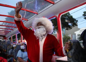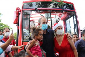 Ao longo de todo o trajeto que o ônibus iluminado de Natal percorreu, o prefeito e a primeira-dama puderam interagir com a população e cumprimentar as pessoas, bem como o trio de Papais Noéis e, em todos os lugares, muitas crianças e seus familiares também quiseram tirar uma foto para guardá-la para sempre como lembrança de Natal.