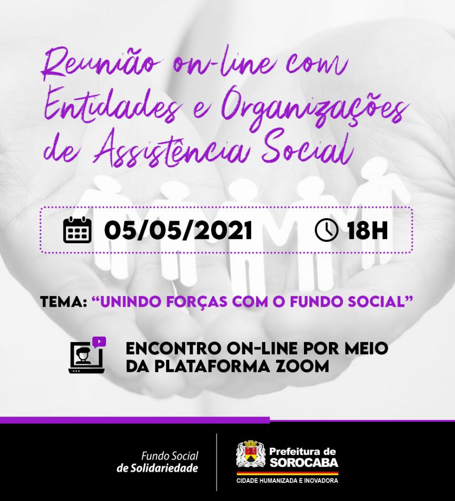 O Fundo Social de Solidariedade (FSS) realiza, nesta quarta-feira (05), reunião on-line com instituições do terceiro setor atuantes em Sorocaba. O encontro acontece às 18h, pela plataforma ZOOM, com a presença da primeira-dama e presidente do FSS, Sirlange Frate Maganhato.