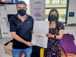No momento da entrega das camisetas, Luiz Felipe recebeu do FSS, um certificado de reconhecimento, pela importante colaboração com o município.