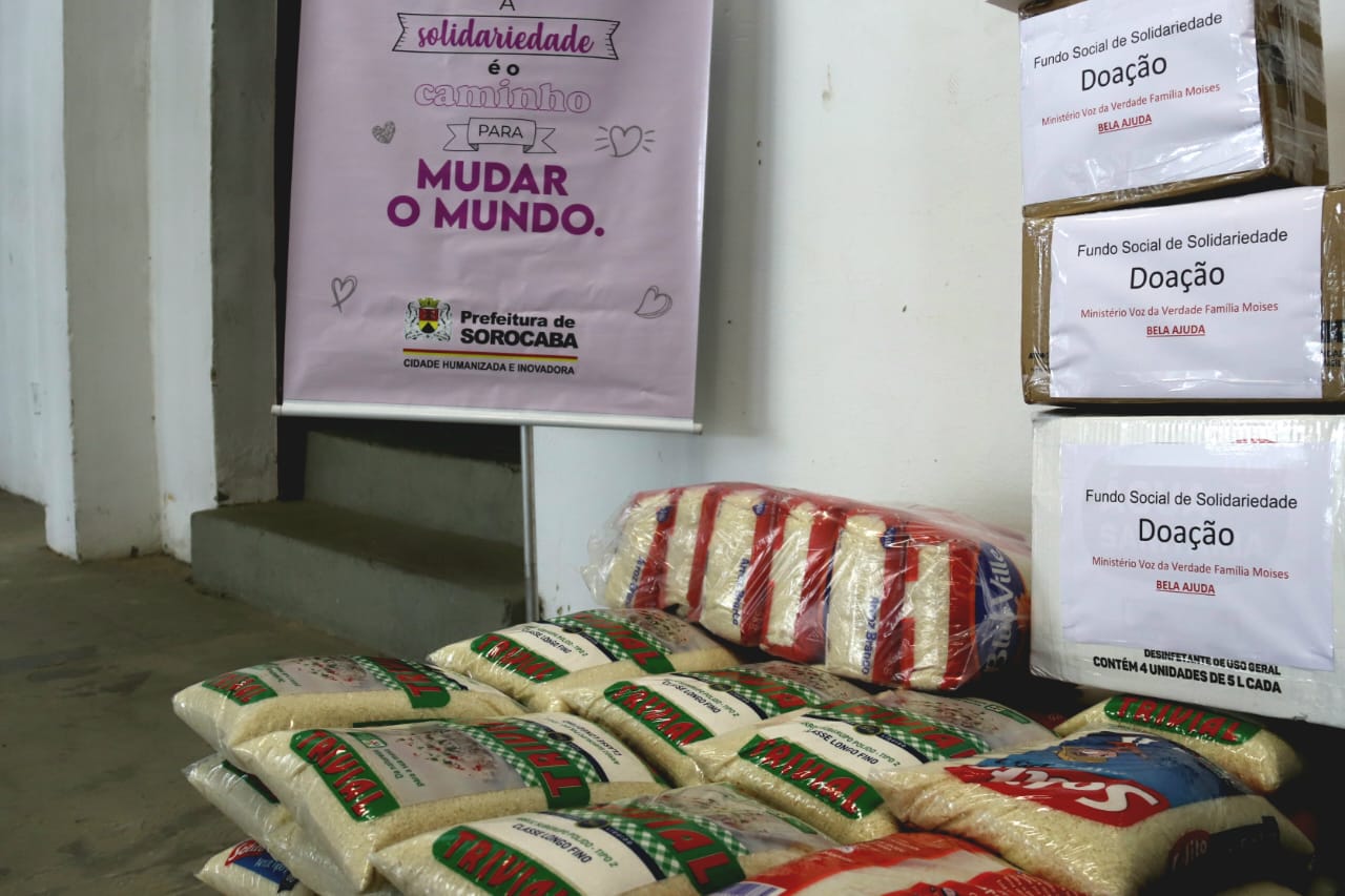 Na manhã desta segunda-feira (14), o Fundo Social de Solidariedade (FSS) de Sorocaba, presidido pela primeira-dama Sirlange Frate Maganhato, recebeu mais 260 kg de arroz para a campanha “A Fome não é Fake!”. A doação foi realizada pelo Projeto Bela Ajuda – Ministério Voz da Verdade Família Moisés, representada pelo seu fundador, Gilberto Nucci.