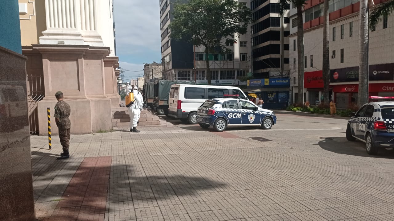 GCM dá apoio ao Exército na desinfecção de áreas do Centro de Sorocaba