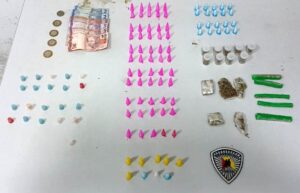 Os agentes iniciaram acompanhamento a pé, momento em que os suspeitos se separaram. Um deles, alcançado e abordado pela equipe, tinha sacola contendo R$ 33,50 em dinheiro, 84 porções de cocaína, 21 de crack e 19 de maconha, prontas para comercialização.