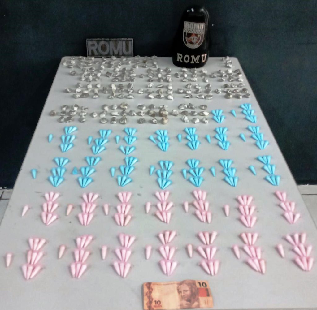 O suspeito deixou o conjunto de prédios e entrou em uma unidade de ensino, onde foi localizado. Em busca pessoal, a GCM localizou com o rapaz uma sacola plástica contendo 138 porções de cocaína e R$ 10 em dinheiro. O adolescente assumiu a propriedade das drogas e indicou um ponto, no residencial, onde havia mais 156 porções de cocaína e 173 de maconha.