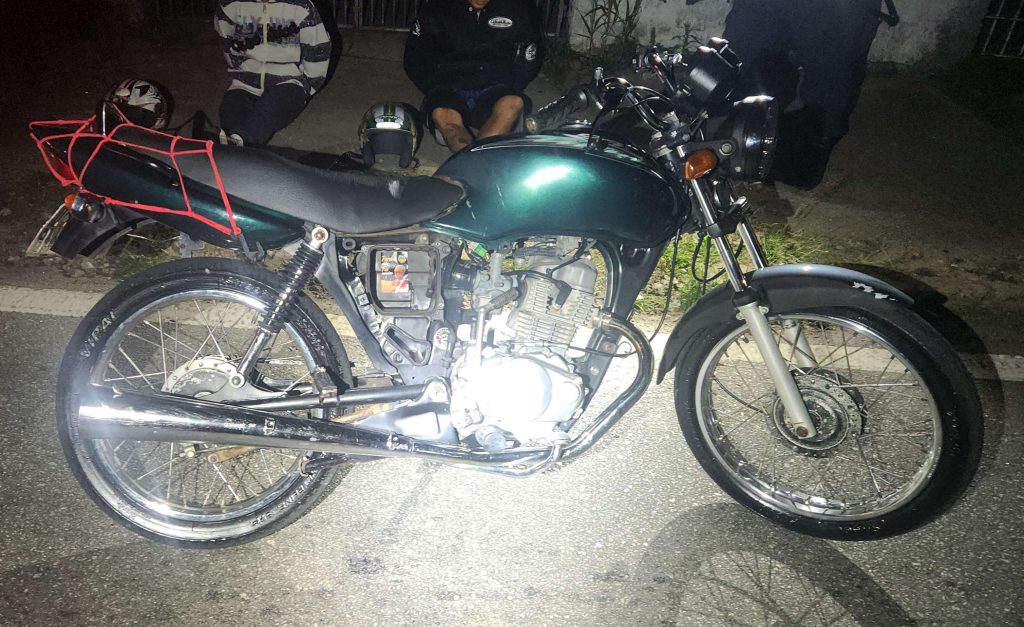 Ao verificar a moto, a GCM constatou que a placa estava com um dos caracteres adulterado com fita isolante, procedimento adotado pelo suspeito para escapar de multas. O pagamento do licenciamento estava atrasado desde 2015. Na sequência, foi confirmado que a numeração do motor do veículo também estava adulterada, sendo que a peça era originalmente de outra motocicleta.