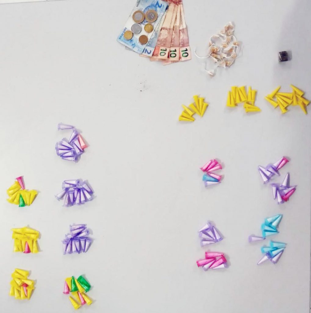 Ele foi alcançado e, durante a abordagem, a GCM identificou que ele portava uma sacola plástica, contendo 36 porções de cocaína, 27 tubos de crack, 20 porções de crack e uma porção de maconha, além de R$ 36,50 em espécie.