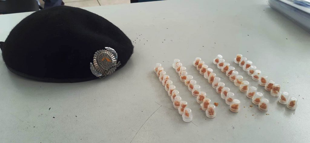Chegando ao local, os guardas perceberam que o grupo se dispersou, após notar a presença da viatura. Um dos suspeitos foi acompanhado e dispensou um embrulho, que depois foi recuperado.