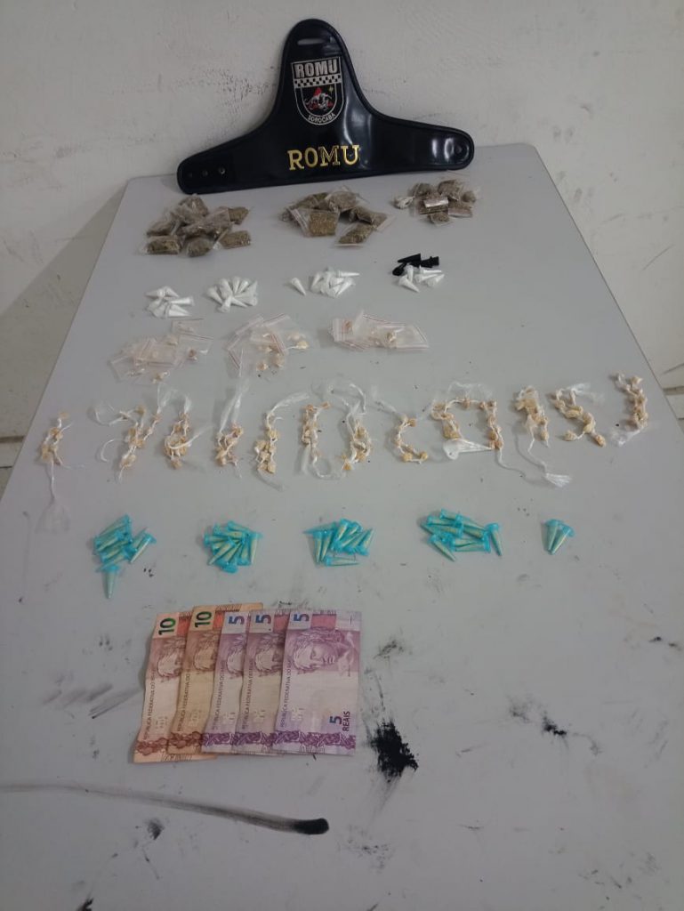 Ao se depararem com a aproximação da viatura, os três homens tentaram fugir a pé, sendo que um deles jogou um objeto em uma residência, ao lado, tendo sido detido pelos guardas municipais, ao tentar escalar um muro. Os outros dois homens tomaram direções diferentes e conseguiram escapar. O objeto que havia sido jogado foi recuperado pela equipe da GCM e verificou tratar-se de uma sacola de pano preto, que continha 30 porções de maconha, 38 pinos de cocaína, 156 pedras de crack e 41 pinos de crack. Já, na revista pessoal do suspeito, foram localizados, em suas vestes, um pino de crack, um pino de cocaína e R$ 35 em espécie.