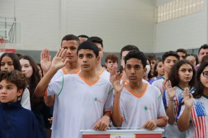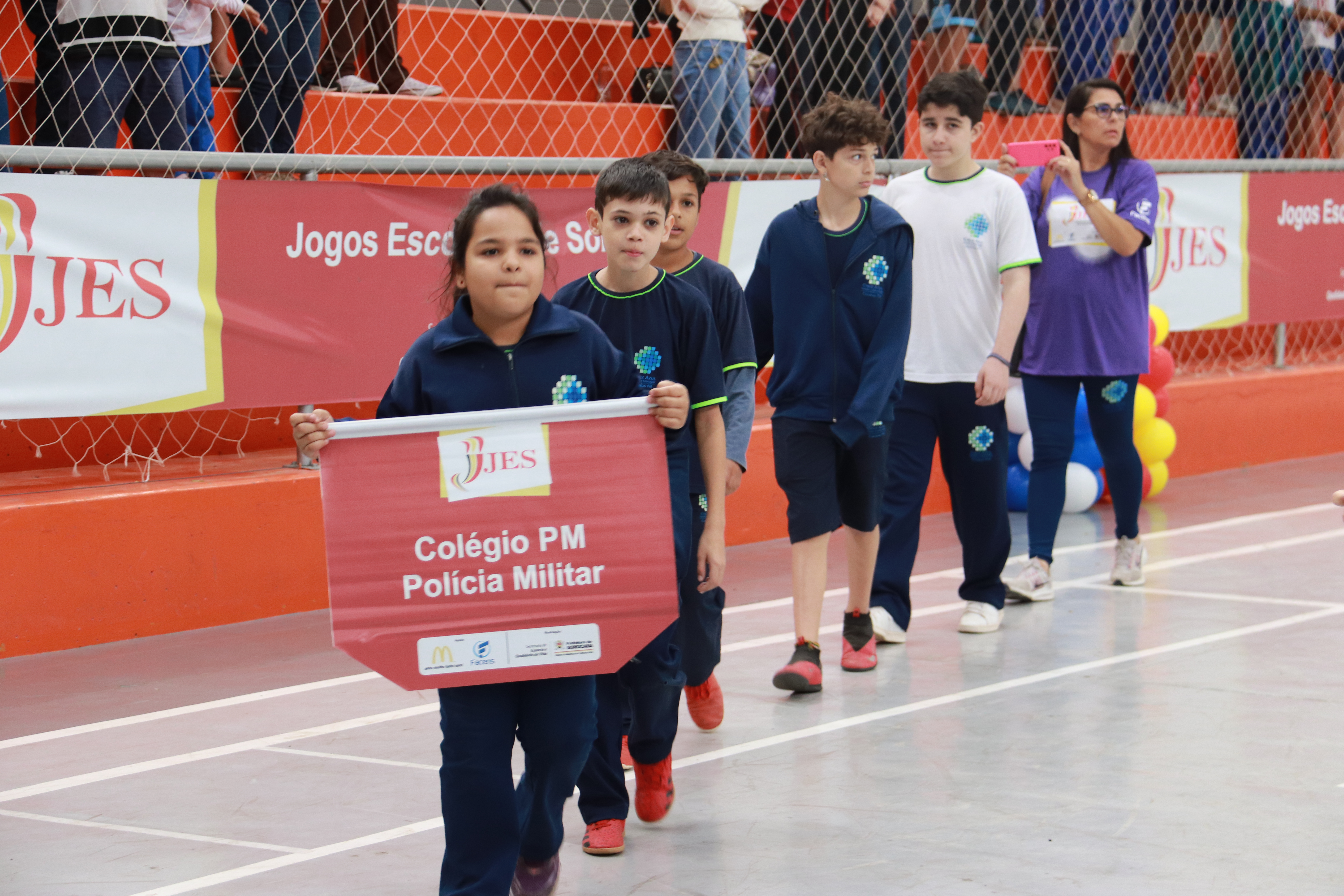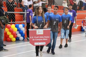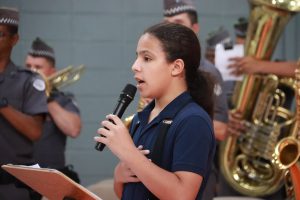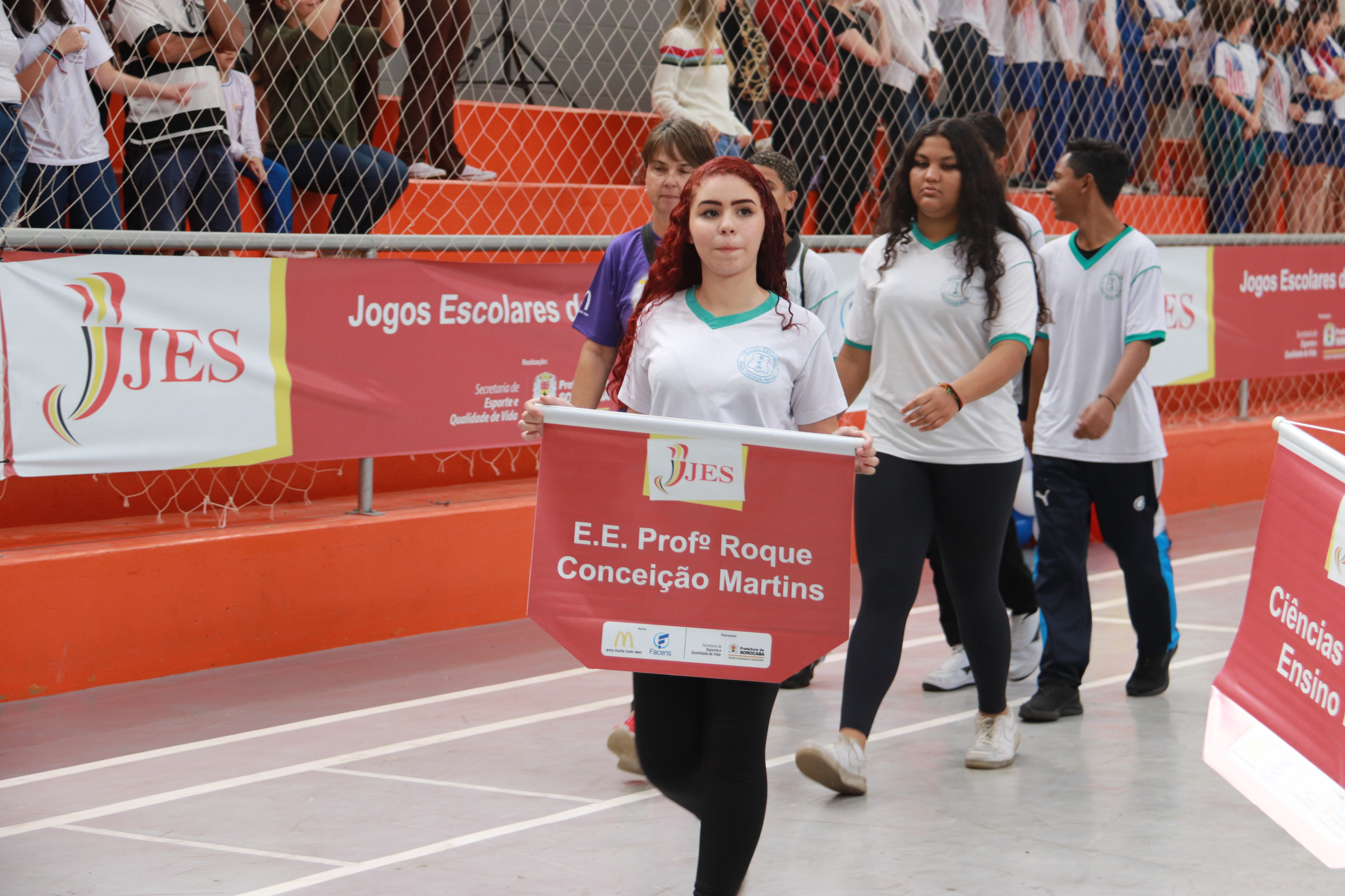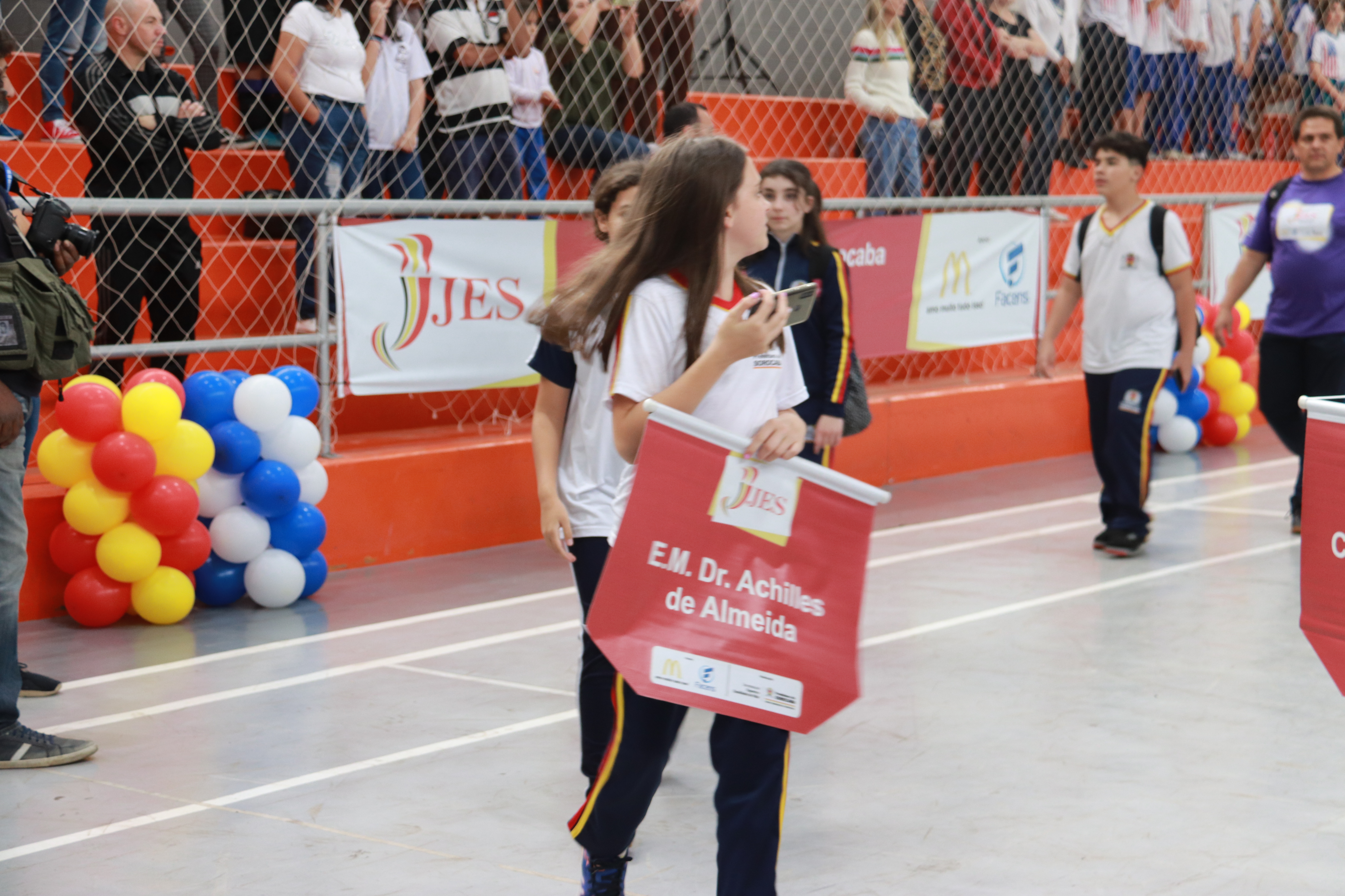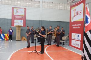 A solenidade contou com o desfile e apresentação das Delegações do JES, ao som da Banda Regimental de Música do CPI-7, que também executou o hino nacional, com a interpretação do aluno da E.E. “Senador Vergueiro” Willian Matheus Siqueira Santos. Já, o juramento foi feito pela estudante da E.E. “Prof. Roque Conceição Martins” Isabela Lima Santos.