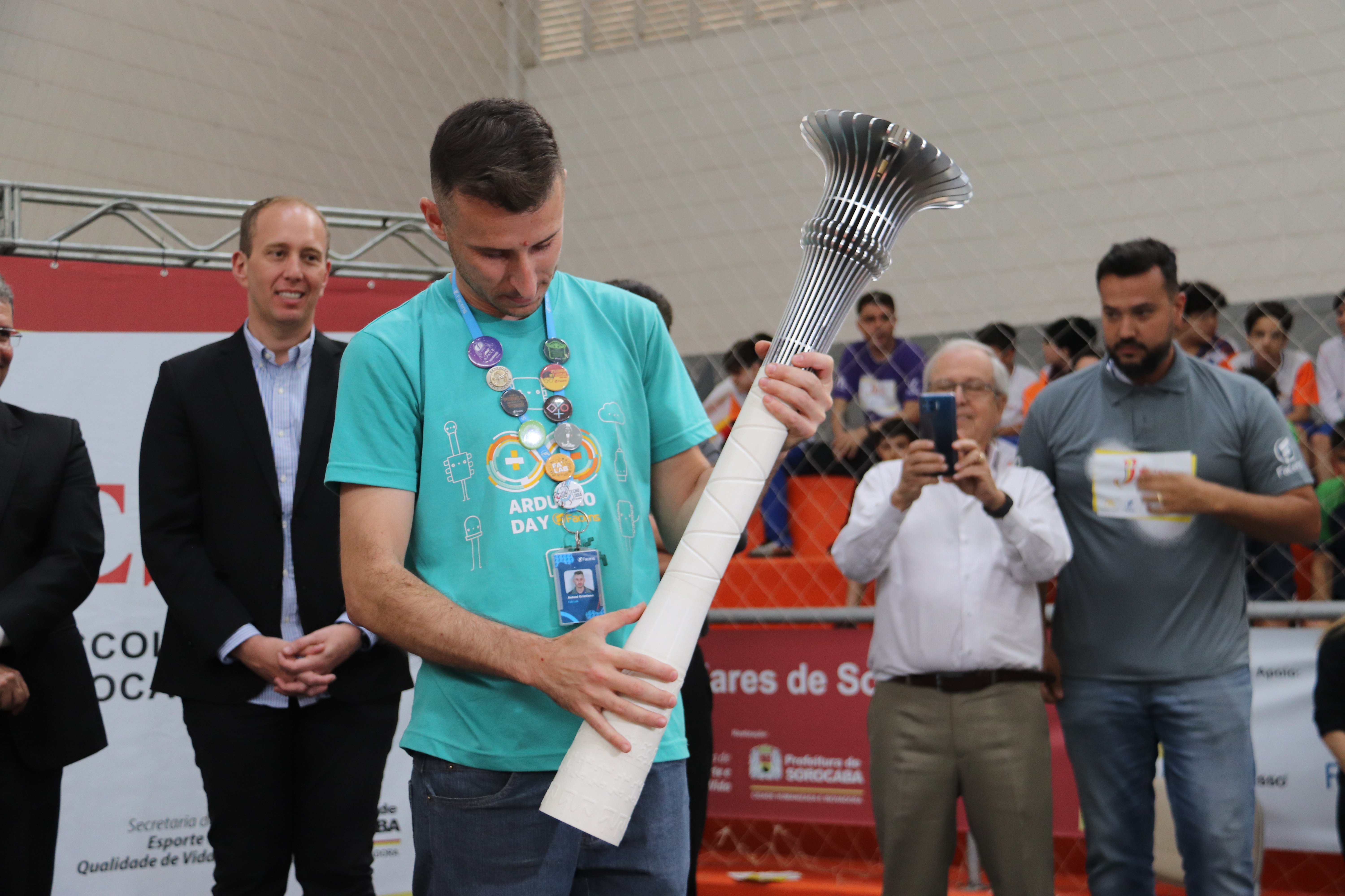 Ao final, o aluno Sammy Granizo da Silva, do Colégio Gênesis, conduziu a tocha para o acendimento da Pira Olímpica. Antes disso, Ântoni Cristiano Romitti, da FAB Guru, contou a história da tocha e da Pira Olímpica, desenvolvidas pelo FabLAB Facens e inspiradas na história de Sorocaba.