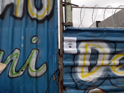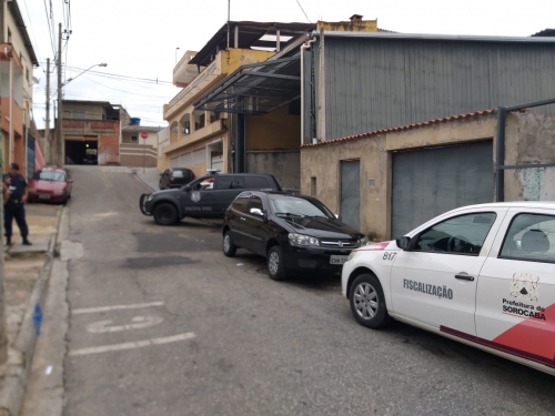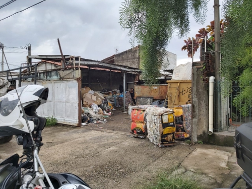 Ferro-velho sendo interditado pelo fiscal da Secretaria de Segurança Urbana (Sesu)