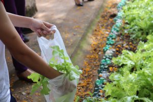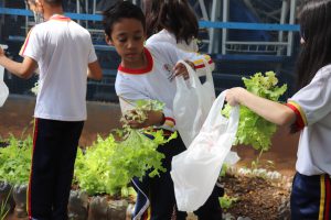 Além de cultivar e colher as verduras e legumes nas hortas para uma refeição balanceada, aulas de Matemática, Geografia e Ciências também integram a atividade.
