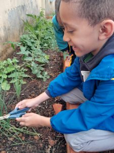 Nos Centros de Educação Infantil (CEIs), o projeto também tem tido grande êxito. No CEI-99 “Larissa de Freitas Borges”, por exemplo, a iniciativa veio para auxiliar no ensino das crianças sobre os diferentes seres vivos, perceber a diversidade das plantas e a interdependência entre eles. A ideia partiu de uma discussão dos educadores da escola em busca da idealização de um “mundo melhor e mais verde para se viver”. E foi colocado em prática por meio das ações das professoras Cínthia Migliorini, Gabriela Marques e Mariana Souza. “O maior incentivo foi buscar a interação da criança com a natureza, o desenvolvimento dos sentidos e de habilidades e tudo o que generosamente recebemos quando cuidamos bem. E, quando a criança se percebe protagonista de todo esse processo, do começo ao fim, ela passa a compreender essas interações e tudo ganha sentido para ela”, diz a professora Cínthia. “Com isso, o gosto pela alimentação saudável passou também a fazer parte da vida das nossas crianças, o que culminou em quatro colheitas de hortaliças e ervas aromáticas durante o ano, das quais realizamos receitas culinárias na própria escola, com excelente aceitação dos alunos”, completa a professora Gabriela.