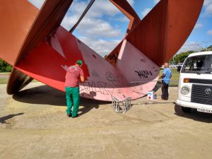 Com isso, até a próxima semana, os frequentadores do espaço público, visitantes e mesmo os motoristas que trafegam pela Avenida Dom Aguirre naquele trecho poderão ver de volta o tom forte e vivo do vermelho original que dá vida ao monumento e que, além da ação do tempo, sofreu com vandalismo por meio de pichações.