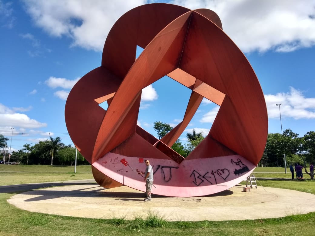 A Prefeitura de Sorocaba, por meio da Secretaria de Serviços Públicos e Obras, está realizando a limpeza e repintura da escultura “Criador e Criação” instalada no Parque das Águas.