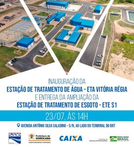 A iniciativa é da Prefeitura de Sorocaba, por meio do Serviço Autônomo de Água e Esgoto (Saae/Sorocaba), em parceria com o Governo Federal, por meio do Ministério do Desenvolvimento Regional. O ato será realizado às 14h, na ETA Vitória Régia, localizada na Avenida Antônio Silva Saladino, s/n, ao lado do terminal do sistema BRT, na Zona Norte da cidade.