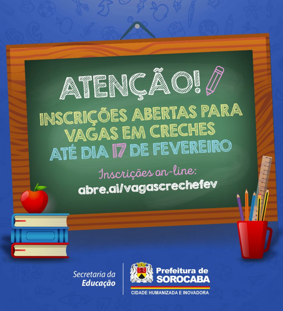 A Prefeitura de Sorocaba, por meio da Secretaria da Educação (Sedu), abriu as inscrições do mês de fevereiro para vagas em creches na cidade, as quais podem ser feitas até o dia 17 deste mês.
