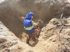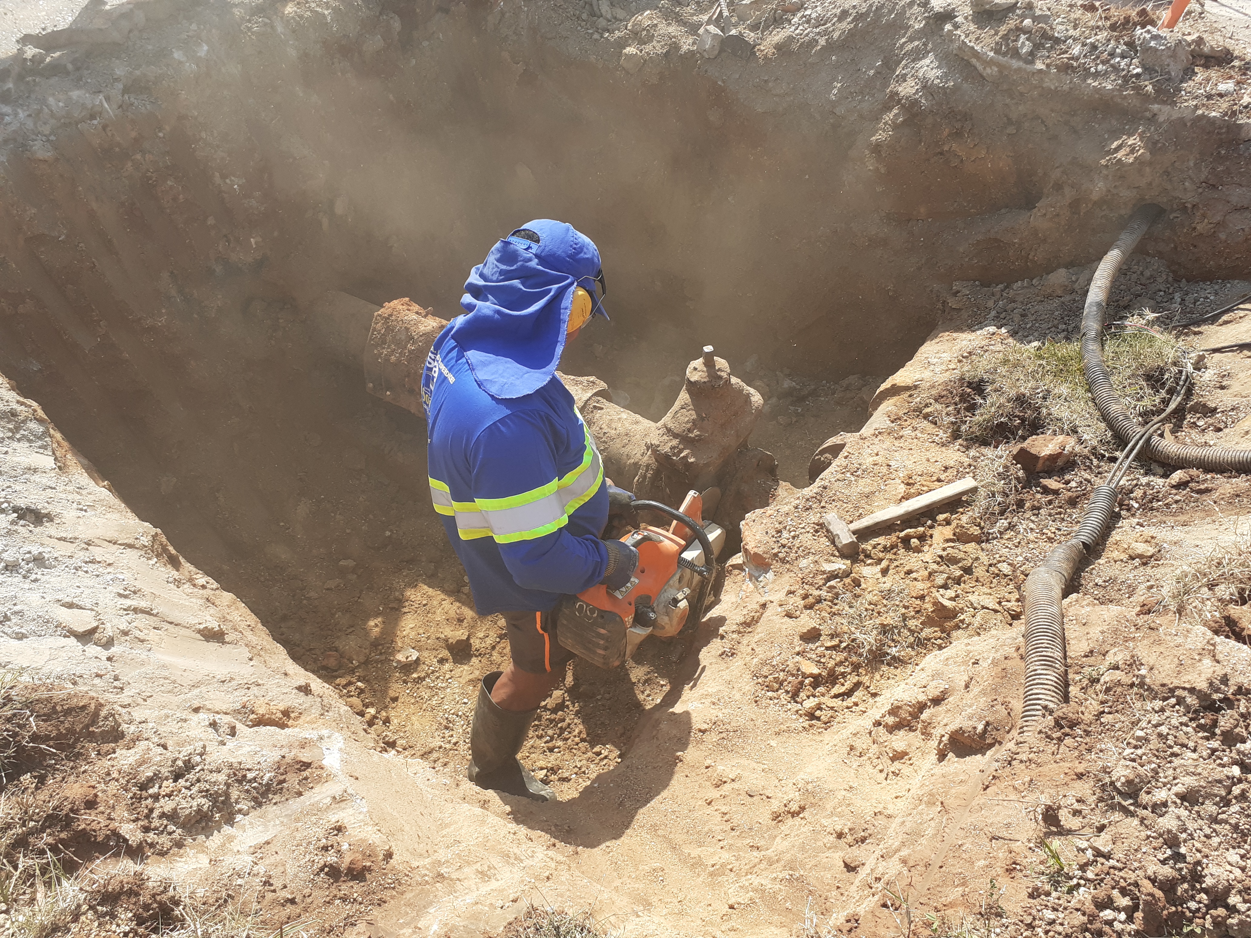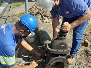 A manutenção programada pelo Serviço Autônomo de Água e Esgoto (Saae) de Sorocaba, numa rede de distribuição de 200 milímetros de diâmetro, teve início às 7h e assim que equipe fez a escavação e chegou até o registro a ser substituído, detectou que a peça em “T”, integrante do sistema, apresentava uma rachadura, motivo pelo qual também está sendo trocada por uma nova.