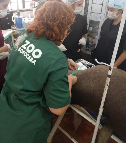 Duas espécies que habitam o Parque Zoológico Municipal “Quinzinho de Barros” foram avaliados preventivamente por uma equipe veterinária neste mês de fevereiro e estão bem. Um dos animais que passou por check-up foi o jacaré-açu (Melanosuchus niger) Wally, que realizou no dia 3 de fevereiro uma série de exames para verificar o seu estado de saúde. Já na última terça-feira (11), foi a vez da anta (Tapirus terrestris) Gabi, que recebeu a visita do médico veterinário Dr. Roberto Fecchio, especialista em Odontologia de Animais Selvagens.