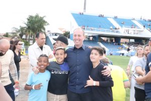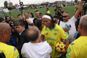 “Hoje é um dia muito importante com a presença de famosos do nosso futebol, autoridades, artistas e personalidades e essa arrecadação de alimentos, que vai ajudar as famílias da nossa cidade que mais precisam. Parabéns a todos que vieram prestigiar essa bela partida”, declarou o prefeito Rodrigo Manga, que esteve no CIC, no início do evento esportivo, tirou fotos e conversou com a população e, ainda, fez a contagem regressiva para a entrada do craque Ronaldinho Gaúcho em campo.
