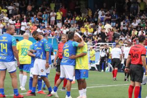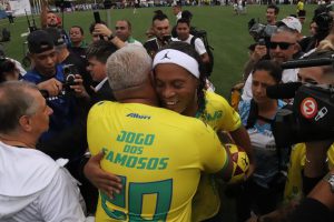 Uma partida de futebol repleta de gols, muita alegria e um belo gesto de solidariedade das famílias sorocabanas. As mais de 9 mil pessoas que assistiram ao Jogo dos Famosos, na tarde deste sábado (19), no Estádio Municipal “Walter Ribeiro”(CIC), entre o time do Ronaldinho Gaúcho e o time do Falcão, se divertiram e vibraram com as jogadas e os inúmeros gols marcados.