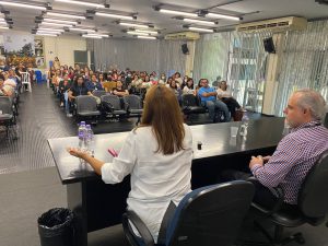 Também houve uma mesa redonda abordando sobre “A atuação médica na rede pública de saúde: o olhar ampliado no cuidado da saúde mental, é possível?”. Foram relatadas ações na estratégia de saúde da família e no serviço de atenção domiciliar. Participaram também do encontro o secretário da Saúde, Dr. Cláudio Pompeo Chagas Dias, e os médicos coordenadores da SES, Dr. Alexandre Ascencio, Dr. Lúcio Neves e Dra. Tatchia Garcia.