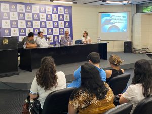 Já, as palestrantes Dayana Dutra e Maria Madalena Sudário, coordenadoras dos CAPs “Viver em Liberdade e “Saca só”, respectivamente, abordaram o tema: “CAPS: potências para ações de cuidado em saúde mental: ações intersetoriais e territoriais dos CAPS III e CAPS AD III”.