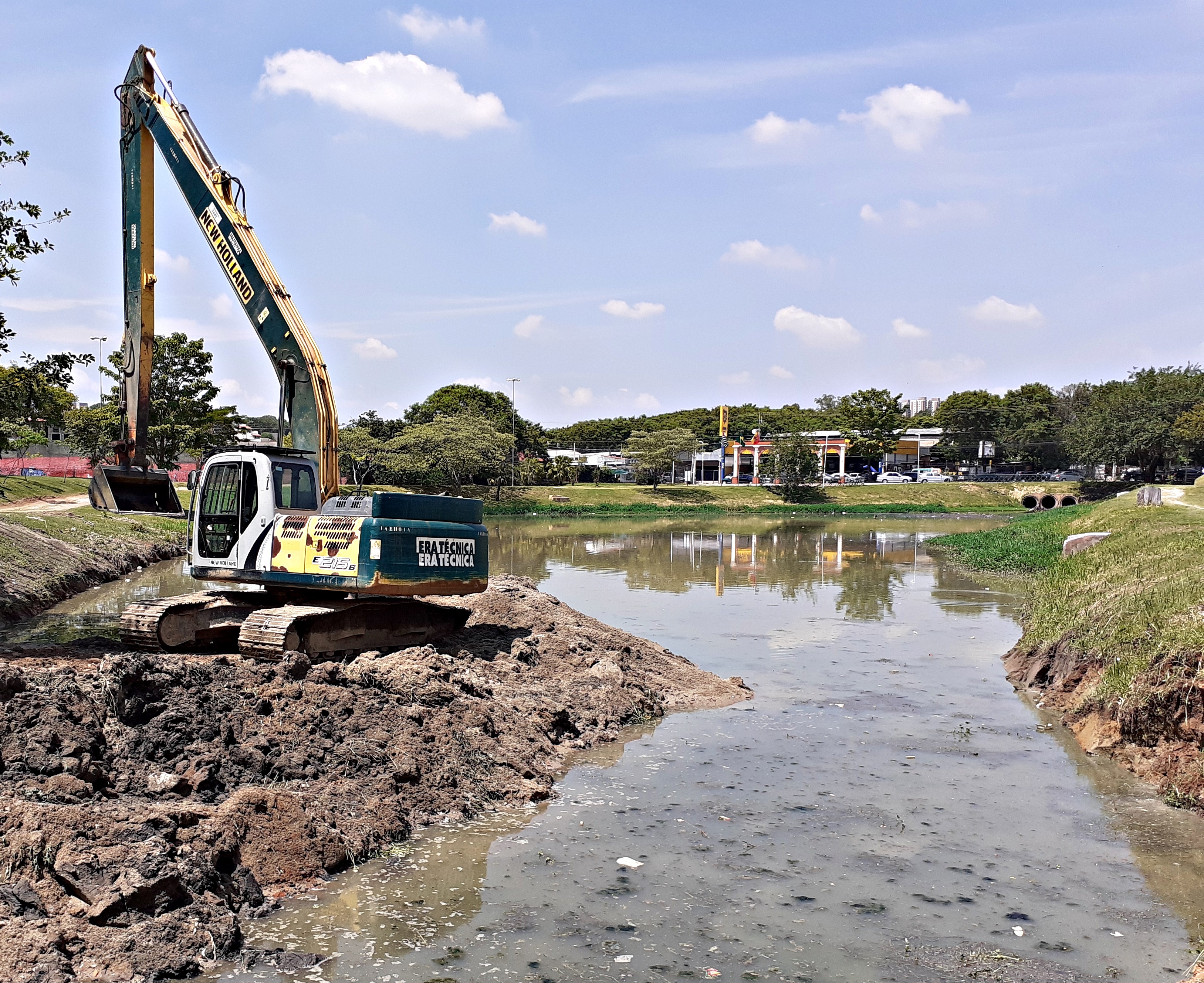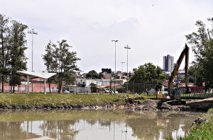 Lago do parque dos Espanhóis e bacia RDC 1 recebem desassoreamento