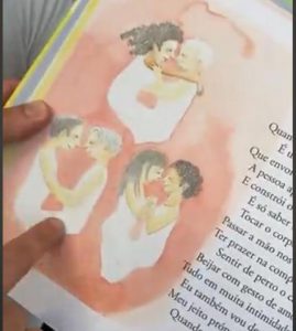 Um dos livros – que nem chegaram a ser desembalados pela administração anterior – apresenta conteúdo sexual e ideológico, como é o caso do exemplar intitulado “No meu corpo mando eu”, que aborda linguagem sexual, exibindo termos como “Um pênis tenho, por fora. E de bolas tenho um par”; “Meus seios hoje pequenos ficarão cheios e fartos e gostosos de tocar”; “Vou querer transar um dia. Porque é uma coisa bem gostosa”; “Alguns dizem que o sabor é que nem de chocolate. Vou querer transar um dia para provar deste calor”.