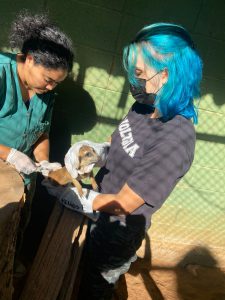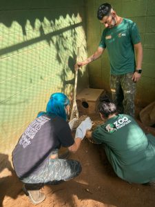 O macaco-prego-de-peito-amarelo é uma espécie ameaçada de extinção na natureza. Para realizar todos os procedimentos de forma segura para todos os envolvidos no manejo, o animal é sedado. Além do exame clínico geral, houve coleta de sangue, cuidados com a saúde bucal e exames de raio x. Já, o bando de suricatas foi examinado e vacinado pela equipe técnica do Zoo, no próprio recinto.