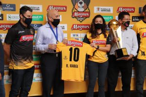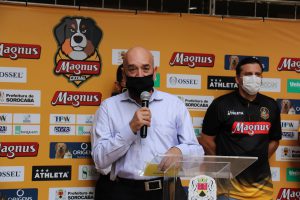 O Magnus Futsal apresentou oficialmente, na tarde desta quinta-feira (28), no saguão do Paço Municipal, o time para a temporada de 2021. Em virtude da pandemia, o ato contou apenas com a presença de dois representantes do time: o técnico Ricardo Di Izzepe, mais conhecido como Ricardinho e o capitão da equipe, Rodrigo Hardy Araújo.