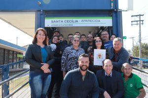 Aparecida de Freitas Oliveira é o nome que recebeu a Estação Jardim Santa Cecilia, por iniciativa do vereador Fábio Simoa (Lei nº 12.422/21). O ato também contou com participação dos filhos, João, Marta e Josué, da nora, Vera, além dos netos, Michel, Vinícius, Fernanda, Cláudio, Larissa e os bisnetos, Ravi e Poliana. “É um momento ímpar para toda a família. Estamos muito felizes, pois nossa mãe foi uma pessoa muito honrada, que trabalhou duro na vida e merecia um reconhecimento”, mencionou João.