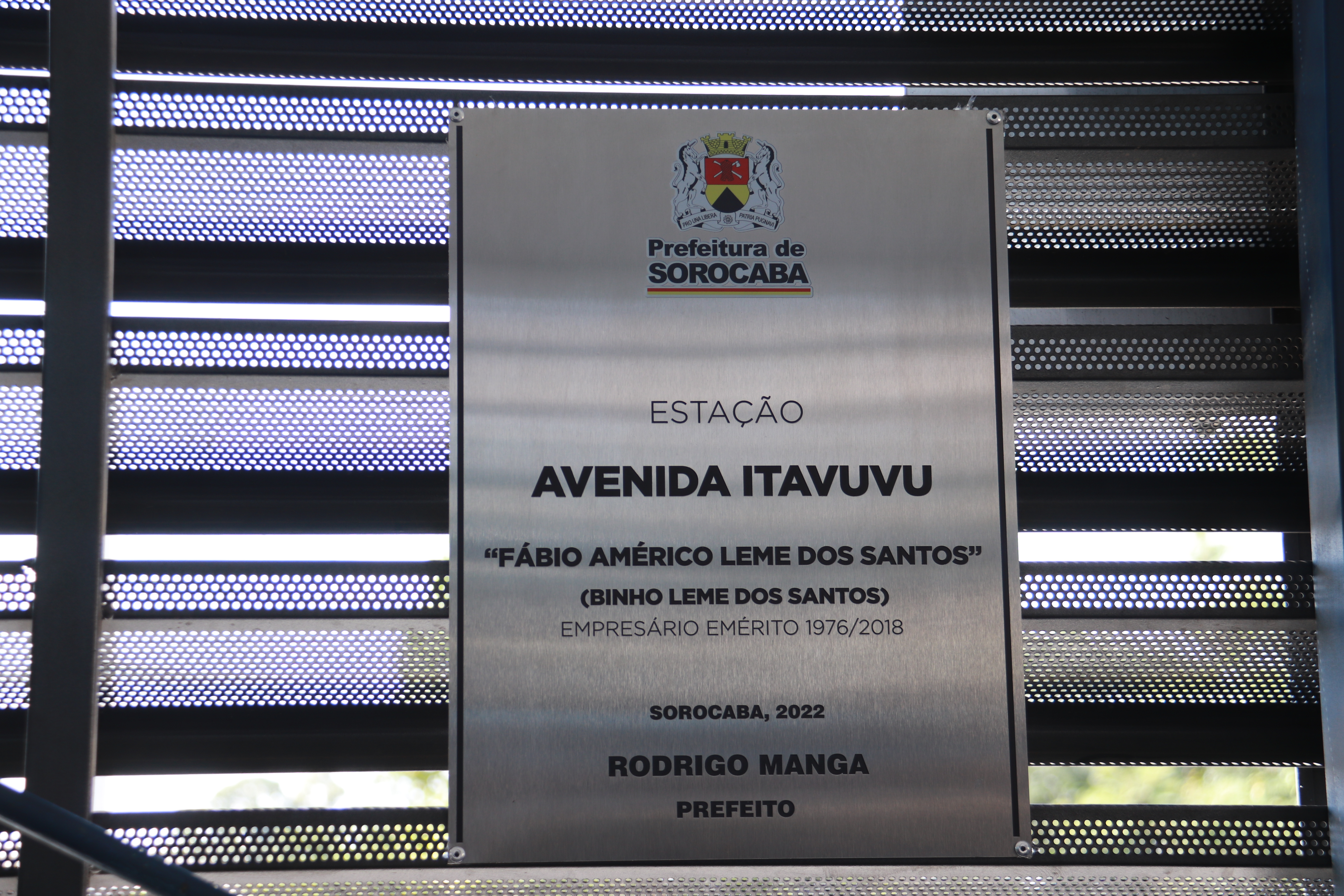 A Estação Itavuvu passou a ser denominada Fabio Américo Leme dos Santos “Binho Leme dos Santos”, conforme indicado pelo ex-vereador Francisco Martinez (Lei nº 12.279/21), que esteve representado pelo vereador Cristiano Passos. Sorocabano nascido em 1976 e formado em Administração de Empresas, Fábio iniciou a carreira profissional na empresa da família, no ramo da indústria de confecção e, depois, no ramo de empreendimentos. Faleceu aos 42 anos, vítima de acidente de carro, em junho de 2018. O descerramento da placa contou, ainda, com o pai de Fábio, Valter Leme dos Santos, a mãe, Vera, e a esposa, Lauren.