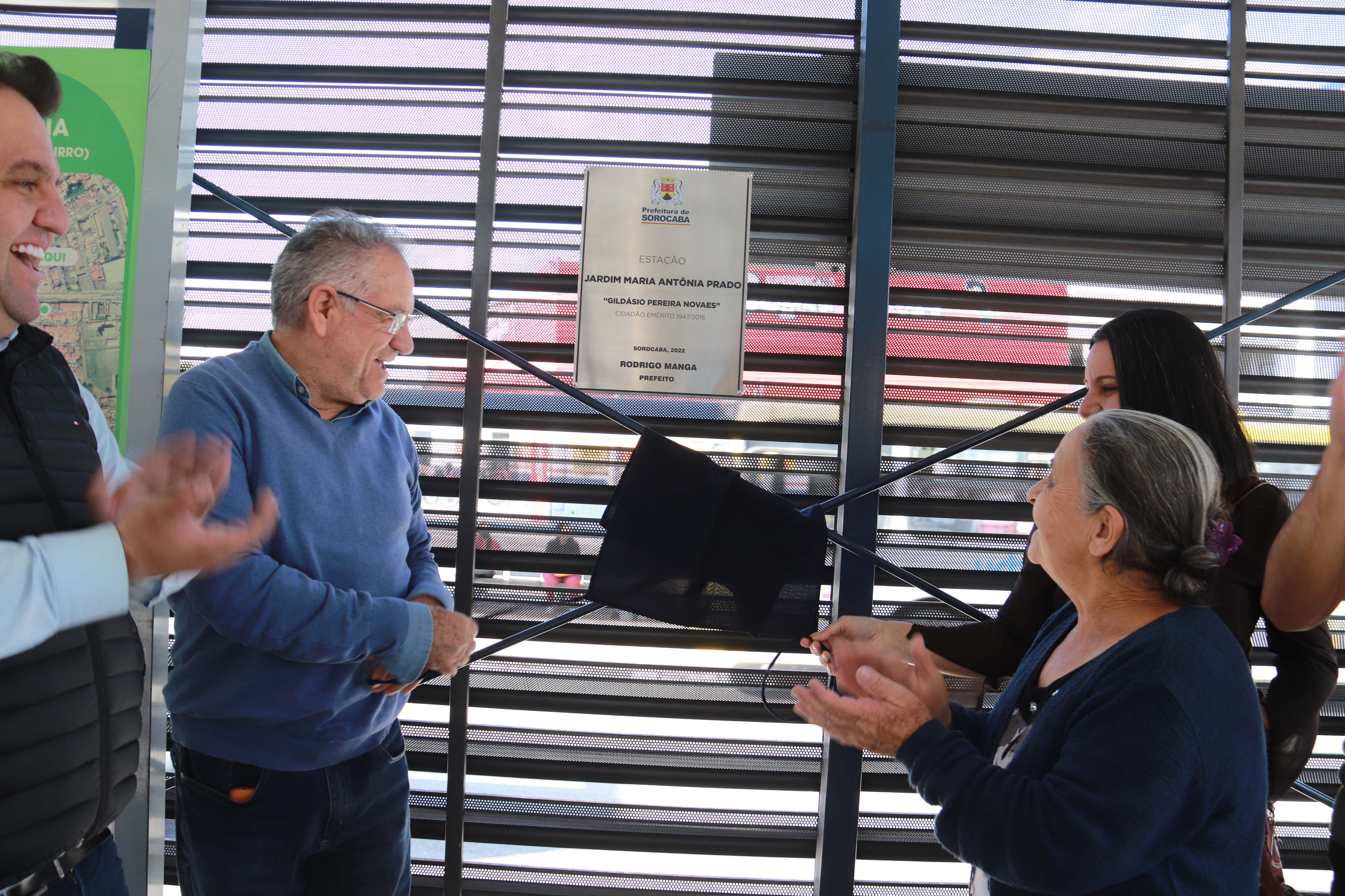 A estação que fica no bairro Maria Antônia Prado recebeu a denominação de Gildásio Pereira Novaes, por solicitação do vereador João Donizete (Lei nº 12.470/21). “Ele veio para Sorocaba em 1992, atuou em lanchonetes e pizzarias como garçom, era trabalhador, generoso, gentil e todo mundo gostava dele. Tratava todos com carinho. Estamos muito emocionados, pois este momento é muito significativo para nós”, frisou a filha, Cássia, junto do irmão dela, Marcelo, da mãe, Cleuza, e dos netos do homenageado, Mikael, Maity e Nicolle.