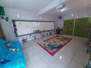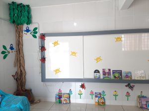 A creche, que foi entregue totalmente revitalizada no último dia 25 de agosto, agora conta também com mais um espaço para interação entre os alunos e o desenvolvimento de atividades que incentivem o hábito da leitura. O Ateliê ganhou uma bela decoração, repleta de cores, tornando o ambiente aconchegante e com figuras que estimulam a imaginação das crianças.