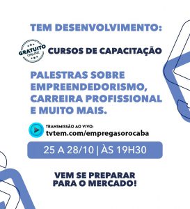Para assistir às palestras, basta acessar o link: tvtem.com/empregasorocaba nos dias e horários das transmissões. Não há necessidade de inscrição e será possível solicitar certificado de participação dessas palestras.