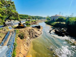 Nesta segunda-feira (18), as máquinas continuam com os trabalhos de desassoreamento do Rio Sorocaba, no trecho localizado nas proximidades da Usina Cultural e da ponte da Rua Padre Madureira, sem a necessidade de interdição viária, pois o descolamento dos caminhões é realizado pela via de acesso para a Usina Cultural.