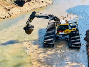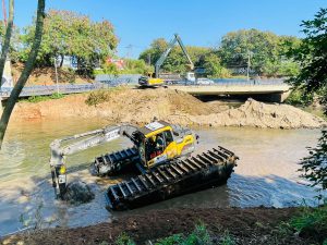 Na ocasião, foram mobilizadas, além da draga flutuante (que vem atuando no trecho desde o início deste mês), mais duas escavadeiras hidráulicas, além de 15 caminhões, para a remoção de aproximadamente 1.344 metros cúbicos de material do leito do rio. No início da noite de domingo, concluído o serviço, para a limpeza da pista, foram utilizados caminhões-pipa, com água de reuso.