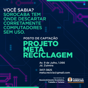 A Prefeitura de Sorocaba, por meio do projeto Metareciclagem, iniciativa da Secretaria de Desenvolvimento Econômico, Trabalho e Turismo (Sedettur), encaminhou às cooperativas de reciclagem mais de 2 toneladas de resíduos eletrônicos doados na sede do projeto, que fica na Vila Barão.