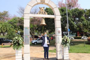 Idealizado pelo italiano Gaetano Brancati Luigi, o Marco da Paz está presente em diversos locais do país e do mundo, com o objetivo de disseminar a cultura da paz entre os povos. Assessor especial da presidência da Associação Comercial de São Paulo (ACSP), Luigi viveu, ainda criança, todas as dificuldades e dores da 2ª Guerra Mundial. Em sua fala, ele, que já foi indicado três vezes ao Prêmio Nobel da Paz pela criação do monumento, destacou a mensagem da necessidade de se manter o espírito da paz entre os povos. O primeiro Marco da Paz foi implantado em 2000, no Pátio do Colégio, em São Paulo (SP).