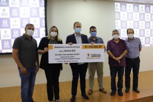 Durante a solenidade, também houve a entrega simbólica de um cheque de R$ 560 mil, provenientes de emenda destinada pelo deputado estadual Tenente Coimbra, representado, na ocasião, por sua assessora parlamentar Vivian Machado, para custear as consultas do mutirão oftalmológico, que também contam com mais R$ 150 mil advindos de verba do Governo Federal.