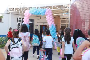 Talita Ferreira de Paula Lima é mãe de um casal de gêmeos, Beatriz e Yuri, de sete anos, e conta que ambos estão muito ansiosos para ter acesso às novidades na E.M. Duljara Fernandes de Oliveira, no Jd. Santo Amaro. “Eles ficaram entusiasmados com a recepção especial da escola no retorno das aulas. Adoraram”, ela enfatizou. As crianças foram recebidas por toda a equipe da escola, com uma superdecoração de balões e cartazes de boas-vindas.