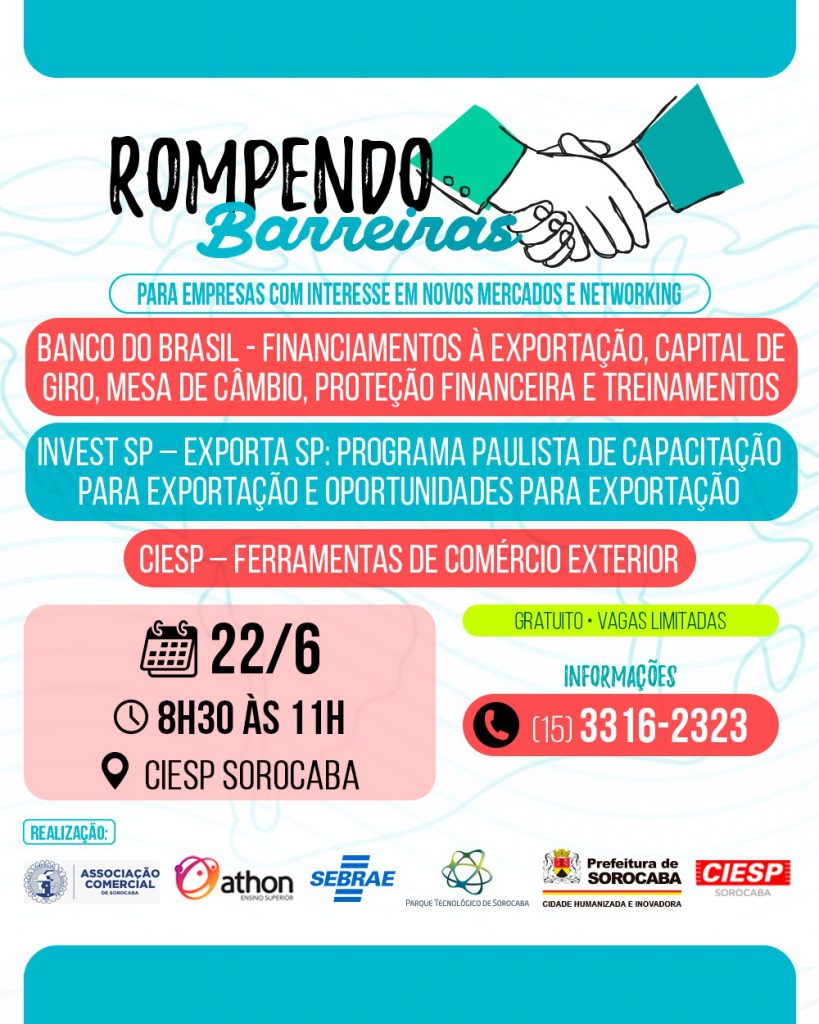 Empresas de Sorocaba e região têm a possibilidade de participar, no próximo dia 22 de junho, de mais um módulo do programa “Rompendo Barreiras”, que é voltado à capacitação de organizações com interesse em alcançar o mercado internacional.