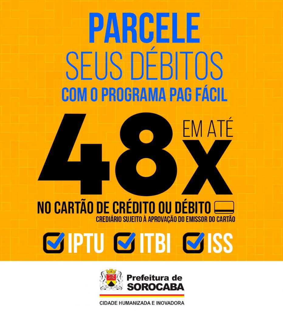 O munícipe interessado em realizar o pagamento pelo novo sistema pode acessar o banner do PAG FÁCIL, disponível na página inicial do portal da Prefeitura: www.sorocaba.sp.gov.br ou, ainda, diretamente pelo link: https://prefsorocaba.credpay.com.br/pagamento/boleto.