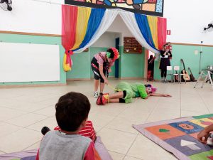 Mais uma experiência de destaque foi a desenvolvida pelo CEI 88 “Prof.ª Vera Apparecida Guariglia dos Santos”, em alusão ao circo, tema lúdico e que envolveu as crianças em atividades novas e divertidas. Ao longo de uma semana, cada professor desenvolveu ações dirigidas a uma turma, desde contação de histórias até atividades musicais, abrangendo também brincadeiras circenses, como trapézio, malabares e equilíbrio, que favorecem o desenvolvimento da coordenação motora e de noções sobre os limites do corpo, além de aspectos subjetivos, como confiança, capacidade de enfrentar desafios e interação entre os colegas. Números de mágica, por exemplo, conseguem trabalhar a atenção e a concentração dos alunos.