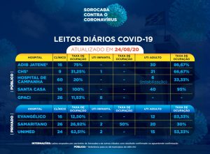 Sorocaba recebeu a notificação de mais 19 novos casos confirmados da Covid-19 nesta segunda-feira (24). Do total de confirmados, 55 estão internados (30 em UTI) e o total de pessoas em recuperação (isolamento domiciliar) é 305.